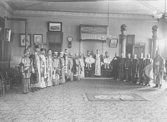 Early 1900s photo of Woodbridge Lodge No. 131 of Free and Accepted Masons, one of the many civic-minded orders active in the Lodi area in the late 1800s and early 1900s. Lodi News-Sentinel.