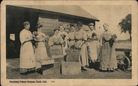 Insofar as table grapes, by 1905 Lodi became associated primarily with Flame Tokay, a European Vitis vinifera eminently suited to the region’s rich soils and dry Mediterranean climate marked by diurnal temperature swings. By 1907 Lodi’s enterprising fruit packers were shipping over $10 million — over $240 million by today’s currency — in grapes for the fresh market, although Flame Tokay could also be turned into wine, primarily for brandy distillation.